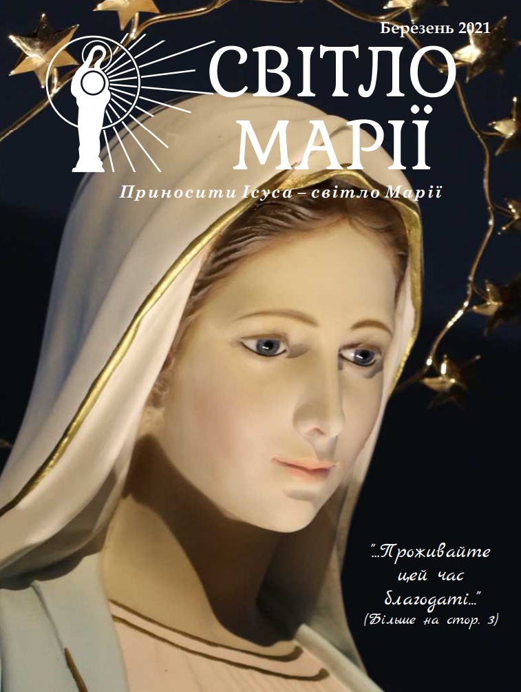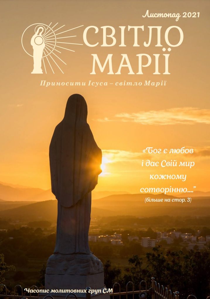 Світло Марії. Грудень 2021 pdf Світло Марії. Листопад 2021 pdf Світло Марії. Жовтень 2021 pdf Світло Марії. Вересень 2021 pdf Світло Марії. Серпень 2021 pdf Світло Марії. Липень 2021 pdf Світло Марії. Червень 2021 pdf Світло Марії. Травень 2021 pdf Світло Марії. Квітень 2021 pdf Світло Марії. Березень 2021 pdf Звукозапис роздумів над посланням від 25.01.2021 (Тереза Гажійова) pdf Світло Марії. Лютий 2021 pdf