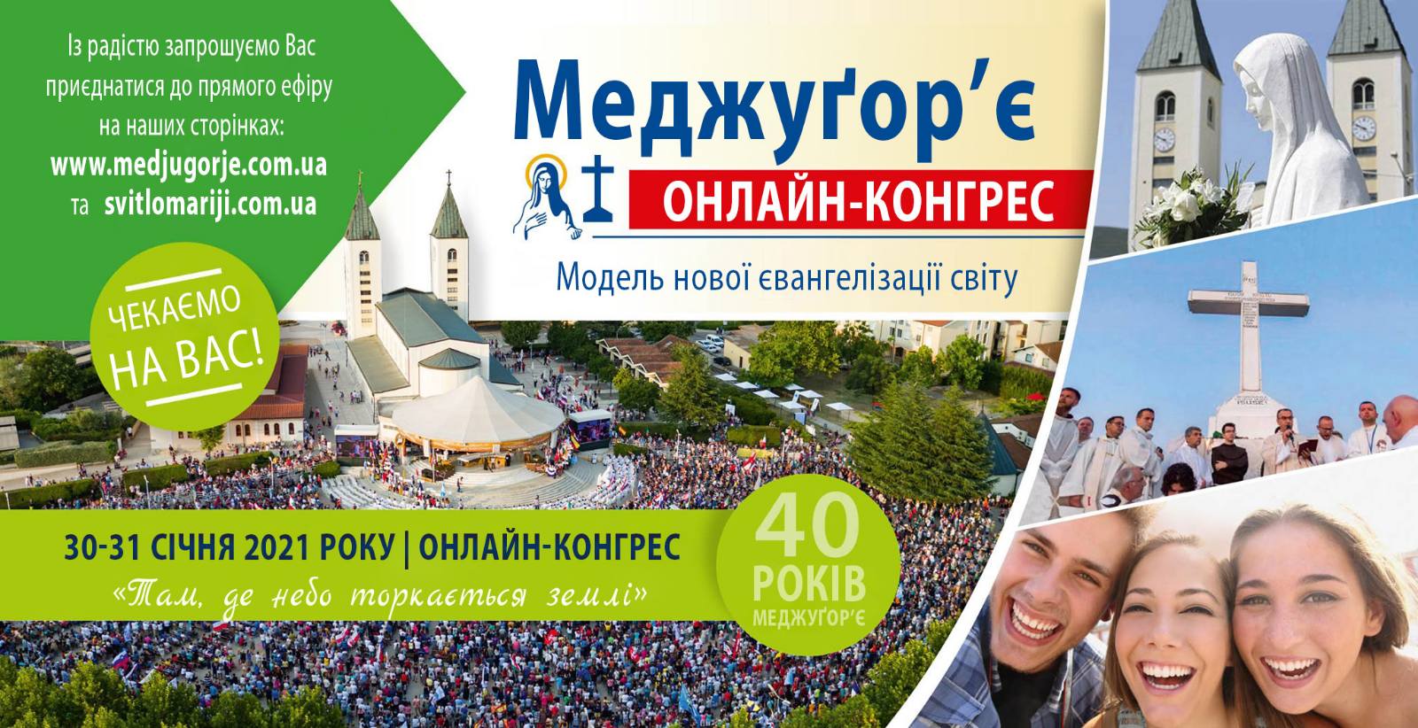 З радістю хочемо вам повідомити, що вже за лічені дні, 30 січня 2021 року, розпочнеться онлайн-конгрес «МЕДЖУҐОР’Є – МОДЕЛЬ НОВОЇ ЄВАНГЕЛІЗАЦІЇ СВІТУ» на честь 40-річного ювілею Меджуґор’я (1981 – 2021). Конгрес відбудеться 30-31 січня 2021 року.