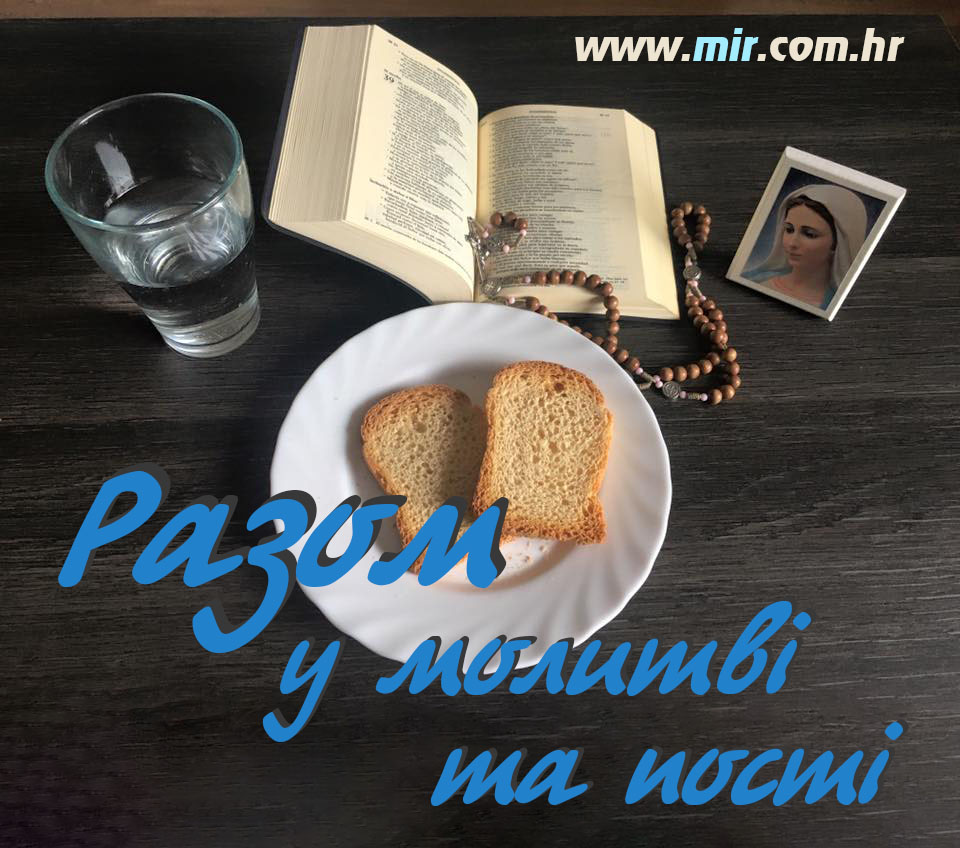 Майже сім років триває наша спільна безперервна молитва та піст за мир. Усіх бажаючих долучитися запрошуємо на інтернет-сторінку: www.mir.com.hr, де є можливість вибрати відповідну годину для молитви чи день для посту у наміренні здійснення планів Богородиці та за мир у всьому світі.