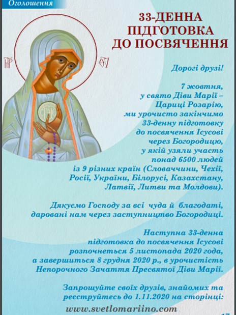 Закінчення 33-х денної підготовки до посвяти Ісусу через Марію