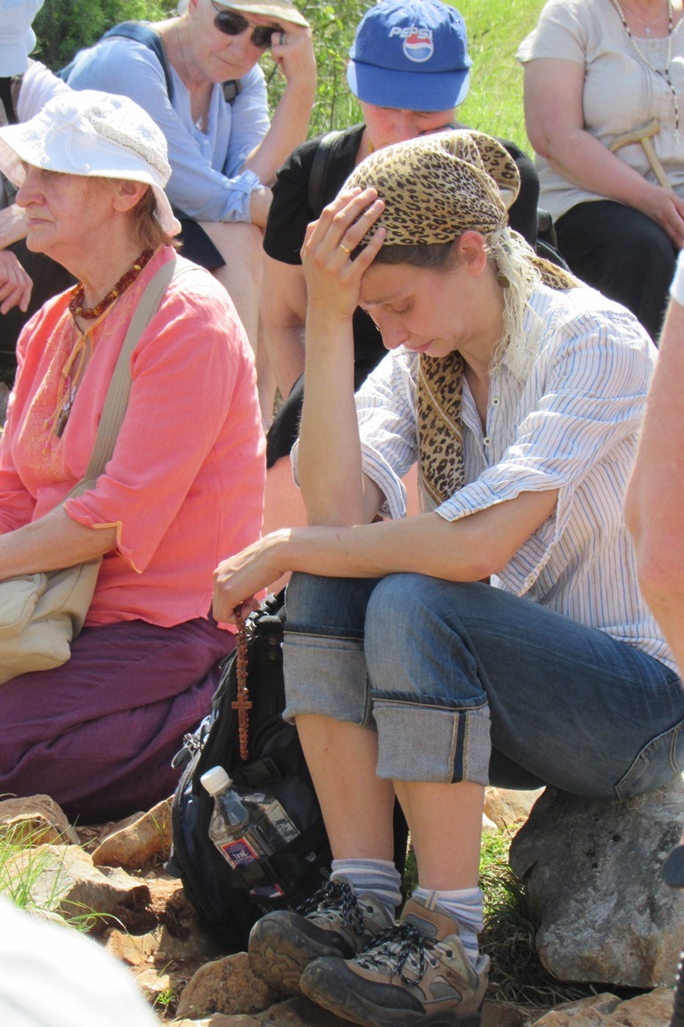 «Я вперше в Меджуґор’ї і протягом цього тижня були дуже важкі моменти, нестерпні. Так під час Вервиці вечірньої програми я прогулювалась і мене все дратувало, кожен звук. В один момент все затихло, була повна тиша. Я подумала: «О, нарешті, так тихо, добре». І раптом почула внутрішній голос: «Чому ти не на колінах?» Я нічого не зрозуміла в ту хвилину, а після вечірньої програми дізналася про те, що 17:40 – це час, коли приходить Марія…